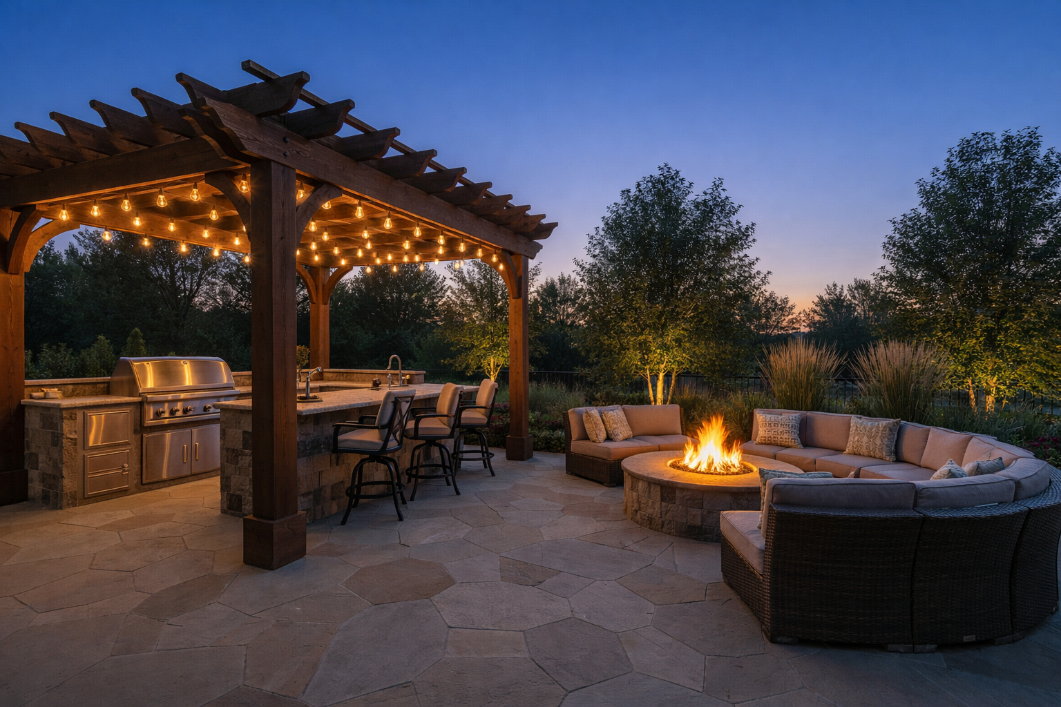 Gather around the warmth of a beautifully crafted fire pit where conversations linger and memories are made under the stars.